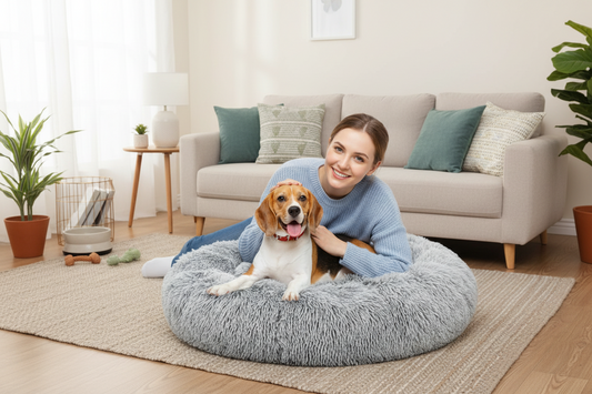 Anti-Slip Round Fluffy Plush Faux Fur Cat Bed, Pets